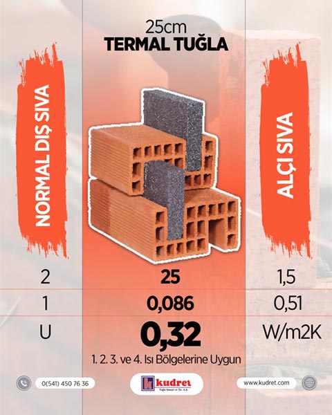 KUDRET 25 LİK UZUN PETEKLİ İZO TUĞLA 650 kg./m3 ( CPC-UTO-24/343 ) | 0.13* |